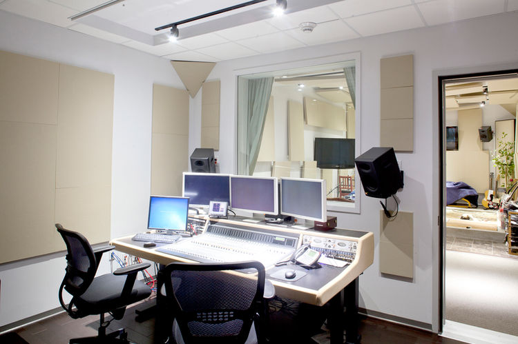 Brier Architecture designed a suite of rooms for a Foley stage, including cast-in-place concrete Foley pits, at Visual Data's Burbank headquarters. The objects seen at the right of the pits are instruments in the art of Foley.
